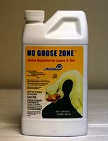 No Goose Zone is a goose repellent for lawns and turf. Spray evenly on area to be protected to provide thorough coverage and allow material to dry before permitting human activity on the treated area. Repeat application in 4 days or as warranted by Canadian Goose activity. Do not mow treated area for several days after application.
